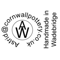 Astrid Whitton artisan potter from Wadebridge, using local clay from Cornwall, each piece is unique offering hand-crafted ceramics designed with love, made to last.